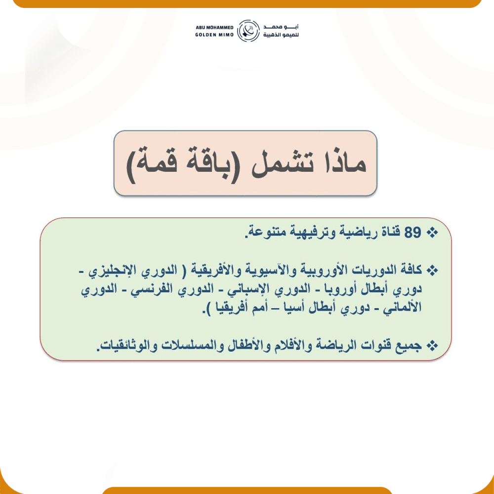 (( ملاحظة هامة: السعر يختلف حسب مدة الإشتراك لذا نرجو منكم اختيار مدة الإشتراك بالباقة في الأسفل (12 شهر أو 6 أشهر أو 3 أشهر ) ))